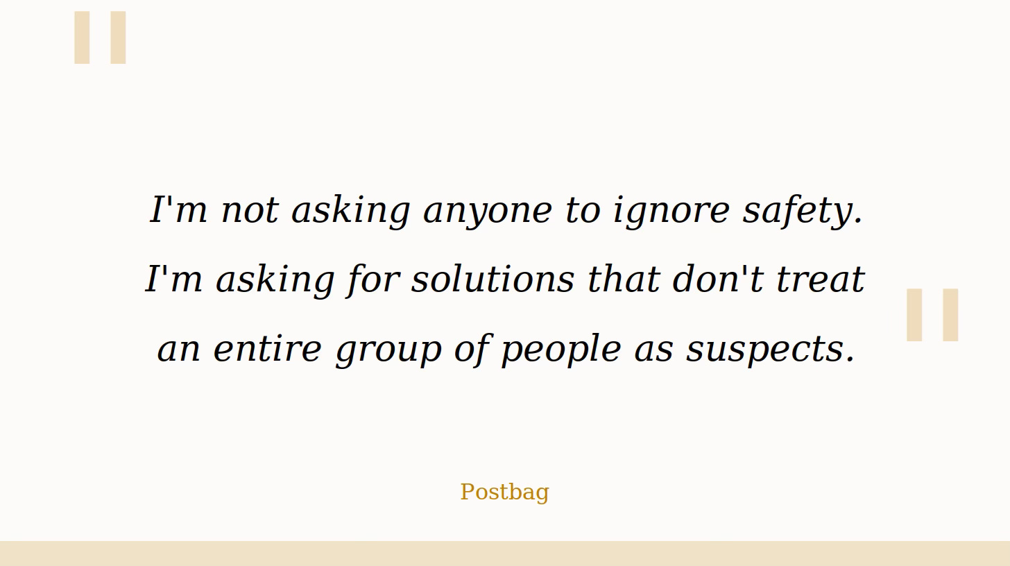 I’m not asking anyone to ignore safety, i’m asking for solutions that don’t treat an entire group of people as suspects.